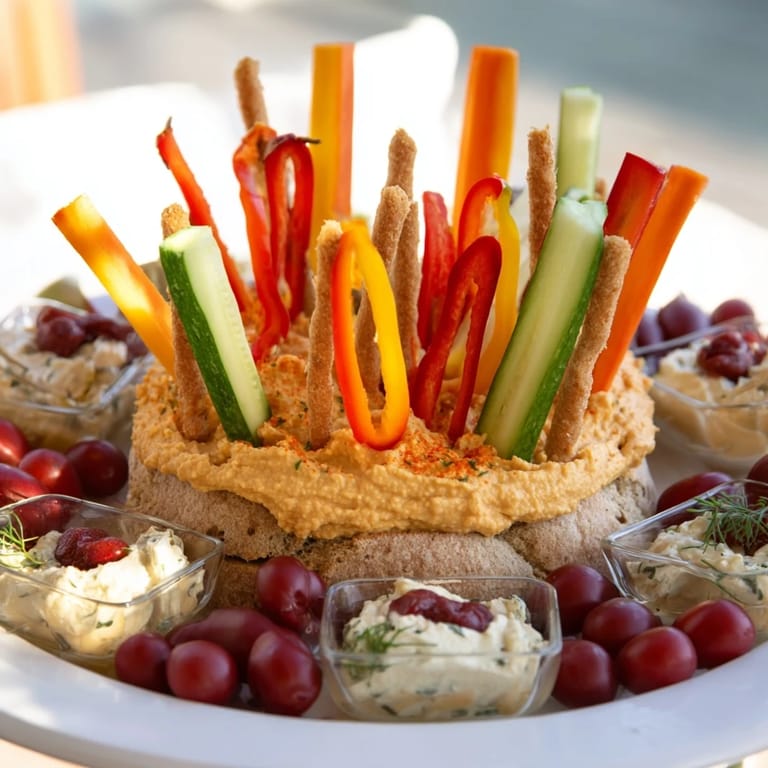 Save to Pinterest A playful and elegant fall-themed appetizer platter featuring a variety of dips and fresh vegetables, artfully arranged to resemble a charming hedgehog — perfect for festive gatherings.