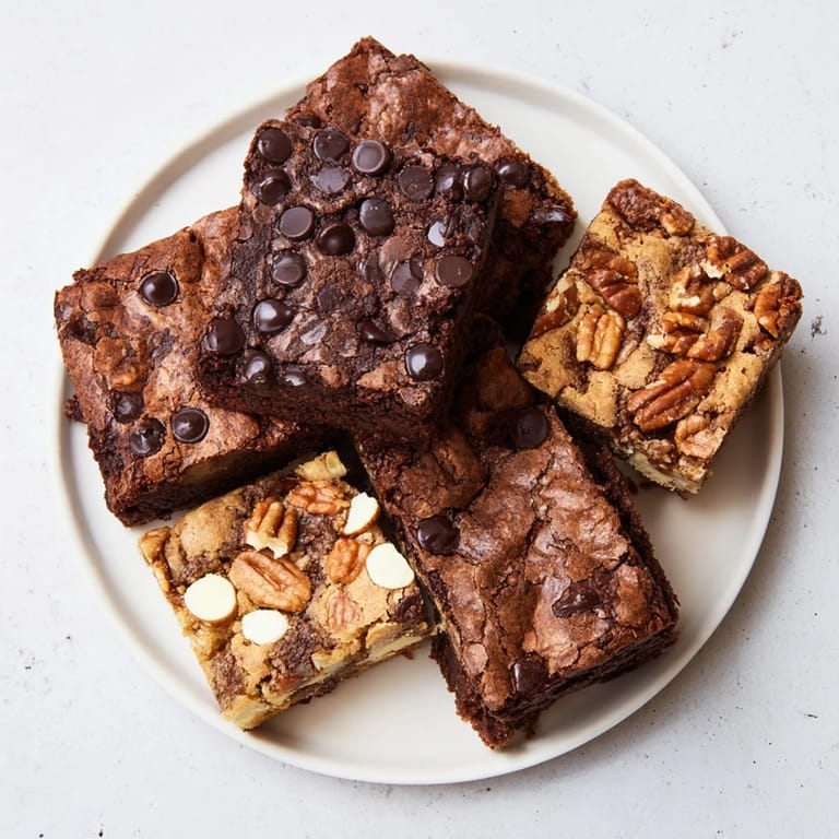Save to Pinterest A decadent assortment of rich chocolate brownies and buttery blondies, perfect for sharing at gatherings or as a sweet treat for any occasion.