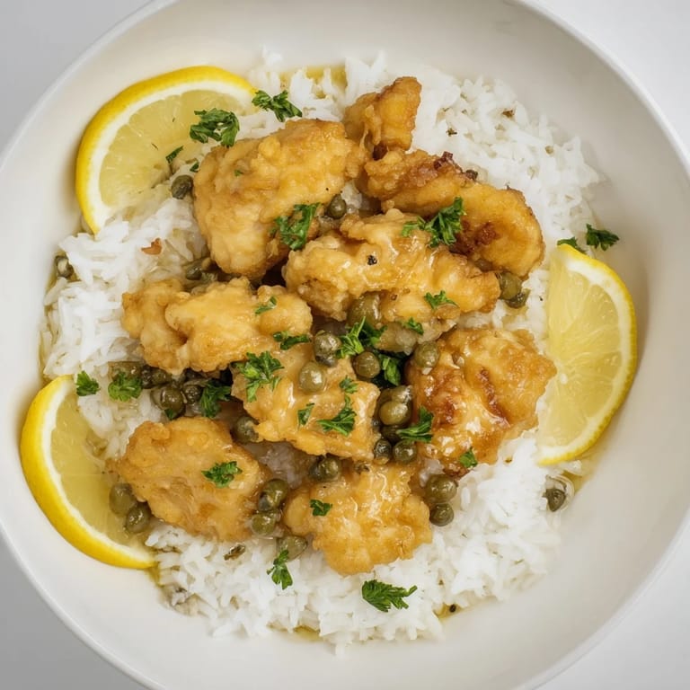 Save to Pinterest A vibrant and zesty rice bowl featuring juicy chicken breast in a lemony piccata sauce, served over steamed rice with a sprinkle of fresh herbs. Perfect for a quick yet elegant meal.
