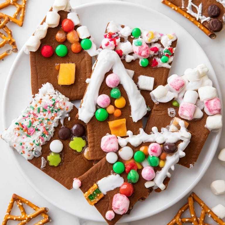 Save to Pinterest A festive and interactive holiday platter featuring gingerbread house pieces, assorted candies, and decorative sweets for building and enjoying your own edible gingerbread creations.