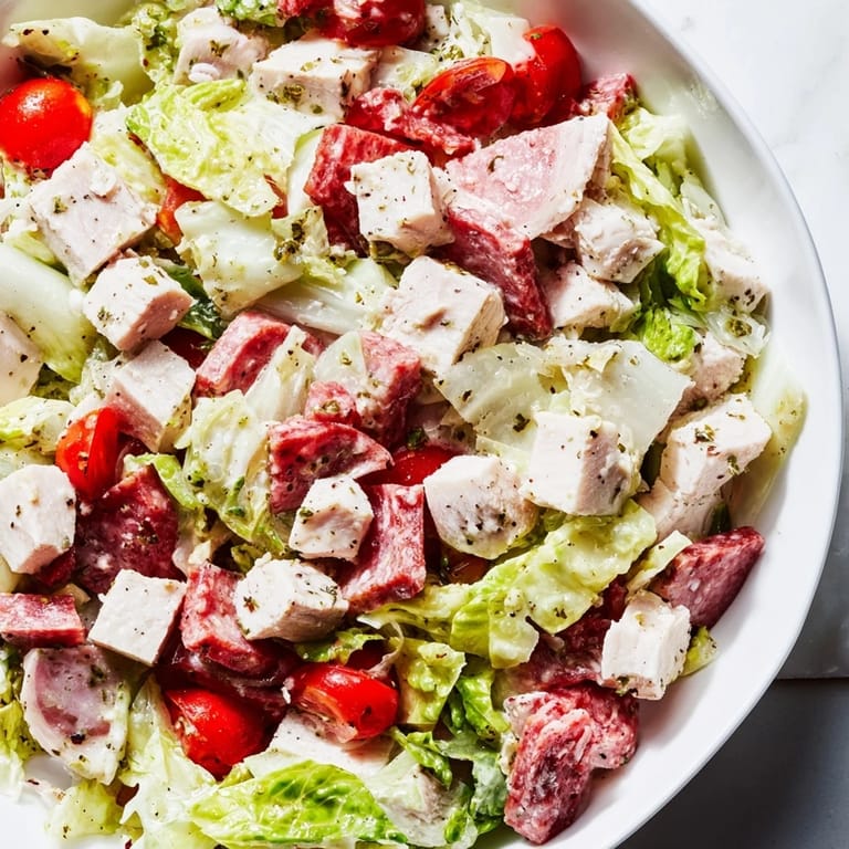 Save to Pinterest Last summer, my neighbor Maria brought over a chaotic bowl of chopped salad after she'd spent the afternoon meal prepping. She called it her anti-salad salad because it refused to be delicate or restrained. One forkful of salty salami, creamy provolone, and that punchy dressing, and I completely understood why Italian delis have been doing this forever.