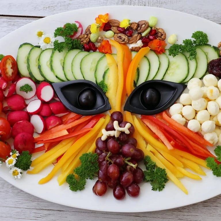 Plating is a form of love, and this mask proves it. When you arrange food this way, you're not just feeding people—you're telling them they're worth the effort. The secret is understanding that every element serves both your eyes and your palate. That arch of cucumber slices isn't just beautiful; it's meant to be grabbed and enjoyed. The cheese cubes aren't filler; they're little pockets of richness tucked strategically throughout. Think of your board as a map where every color and texture is placed intentionally.