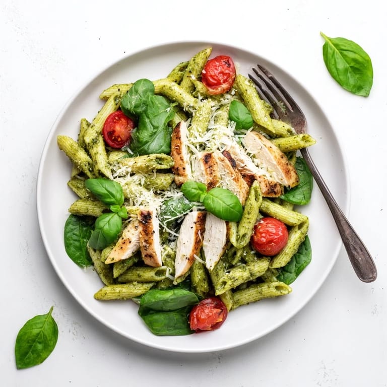 Save to Pinterest The smell of garlic hitting hot olive oil always pulls me straight into the moment, no matter how scattered the day has been. This pesto chicken pasta became my go-to after a particularly chaotic Tuesday when I needed dinner on the table fast but still wanted something that felt like I'd actually cooked. I tossed together what I had, and the way the pesto clung to every twist of pasta while the chicken stayed tender and juicy made me wonder why I'd ever overthought weeknight meals. Now it's the dish I turn to when I want comfort without the fuss. It just works.