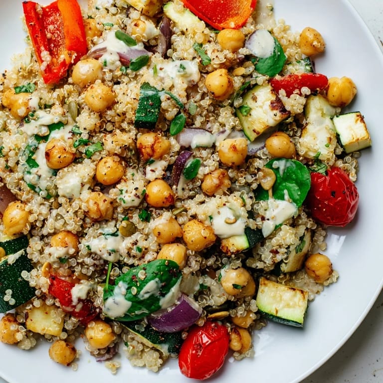 I used to think salads were a chore, something healthy that tasted like obligation. This one changed that completely because nothing about it feels like punishment—the roasted vegetables are genuinely sweet, the tahini dressing is rich and satisfying, and the chickpeas give you the kind of full feeling that sticks with you. It's the rare dish that tastes indulgent while actually being one of the best things you can eat.