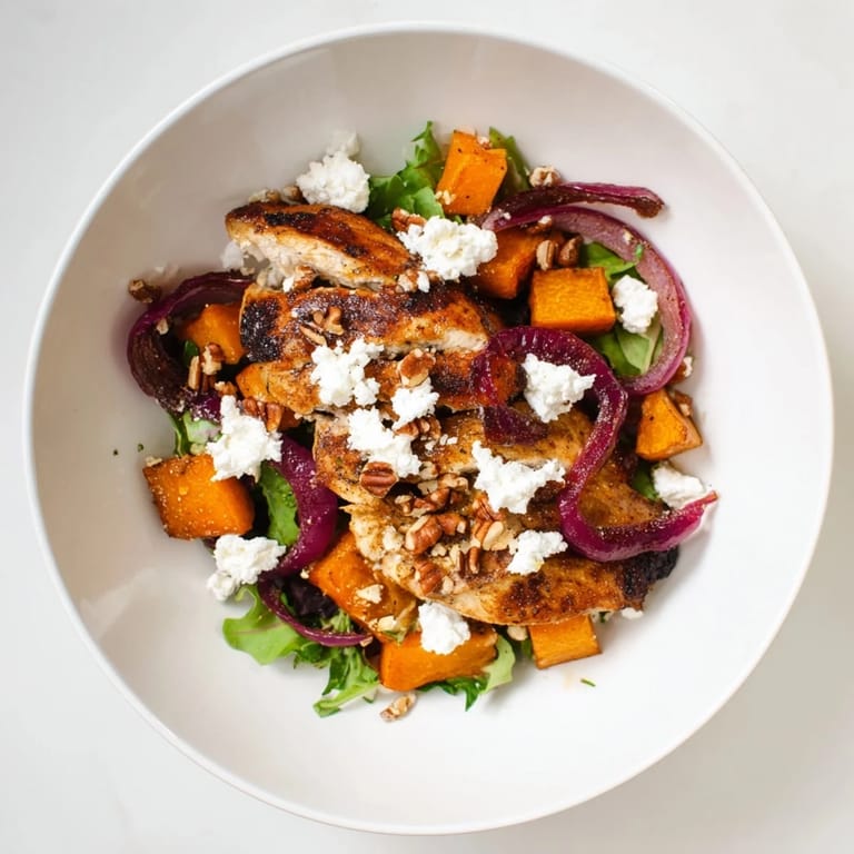 I first made this salad for a chilly weekend dinner and loved how the roasted squash added sweetness while the chicken stayed perfectly juicy. The colors and textures made it an instant family favorite.