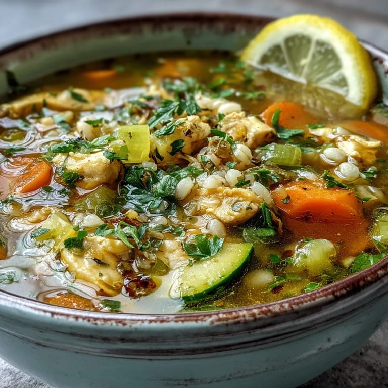 Save to Pinterest Years later, I made this for a friend who was going through a rough patch, and watching them eat a quiet bowl of this soup felt like offering something more than nutrition. There's something about golden broth and tender barley that communicates care in a language that doesn't need words.